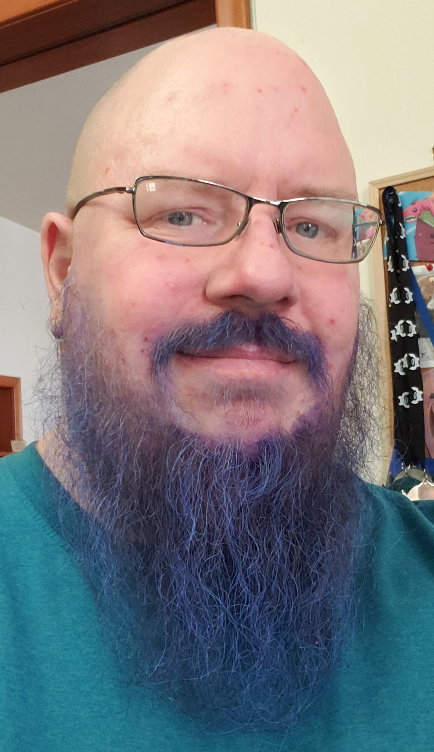 Second, I am raising funds for Extra Life again this year and would appreciate donations to that. Hitting the $200 mark this early in the year was amazing, and resulted in the blue beard you see, pictured. What will I do as the number goes higher? Who knows, but I would love to find out! Plus there are donation milestones and bonuses you can get for donating; all the details are on the page.
